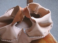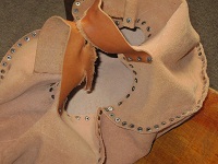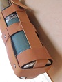 のものもあるのですが、ここは革習ってる者の強みと手作りしました。紐の幅が広すぎて包帯巻いてるみたい・・・。でも、持ち運びには安心!