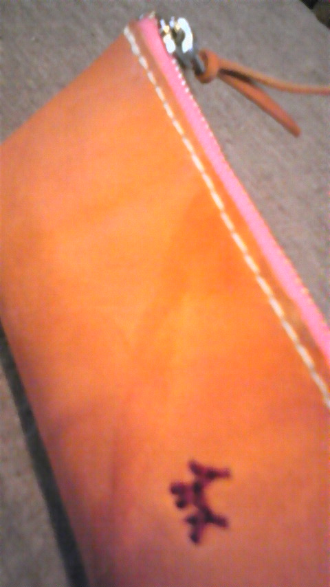 裏地にあえての真っ赤なスエードと便利なケータイ入れをつけて、ワタシのbagとさせていただきました。